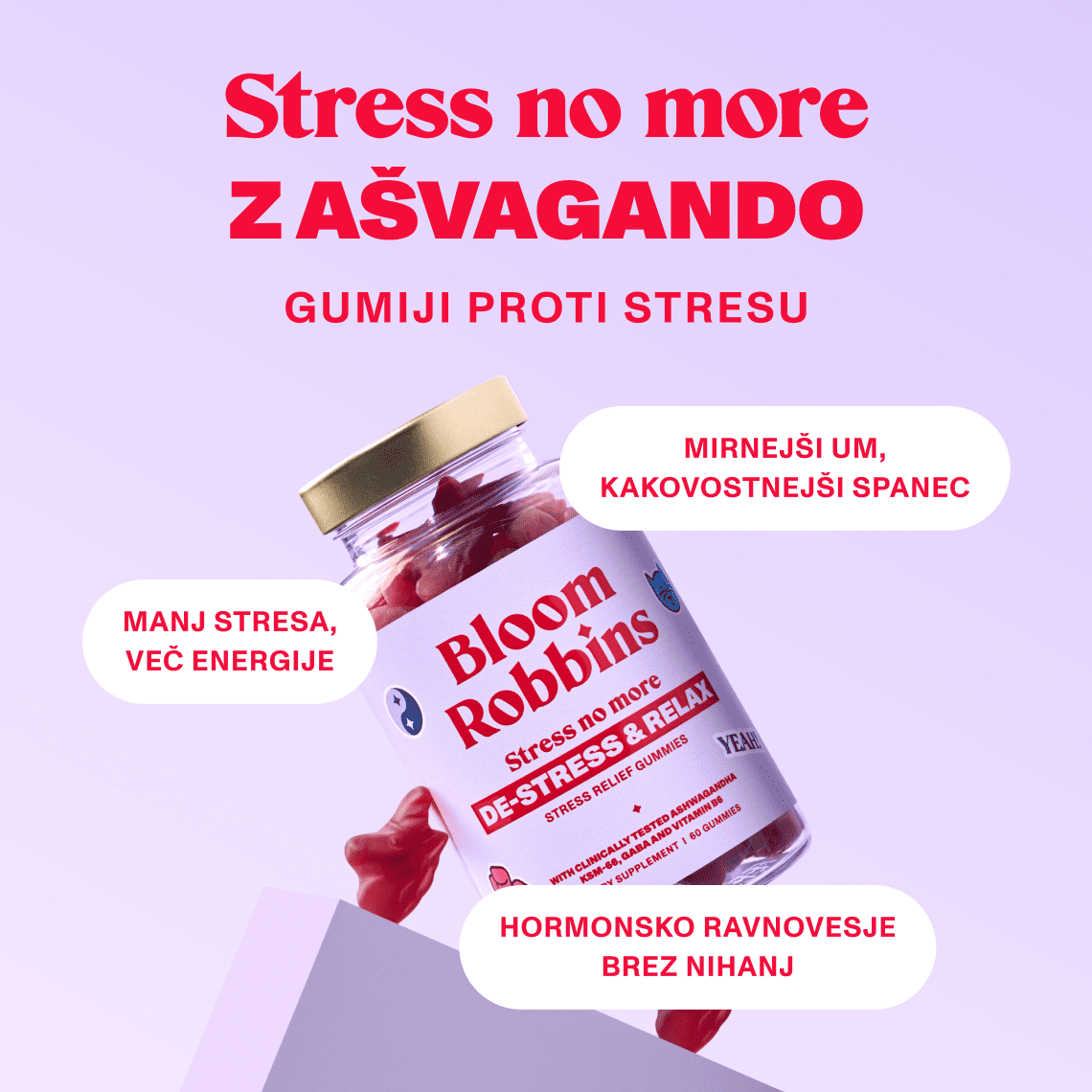 Vitamini proti stresu z ašvagande - vitaminski gumijasti bomboni STRESS no more