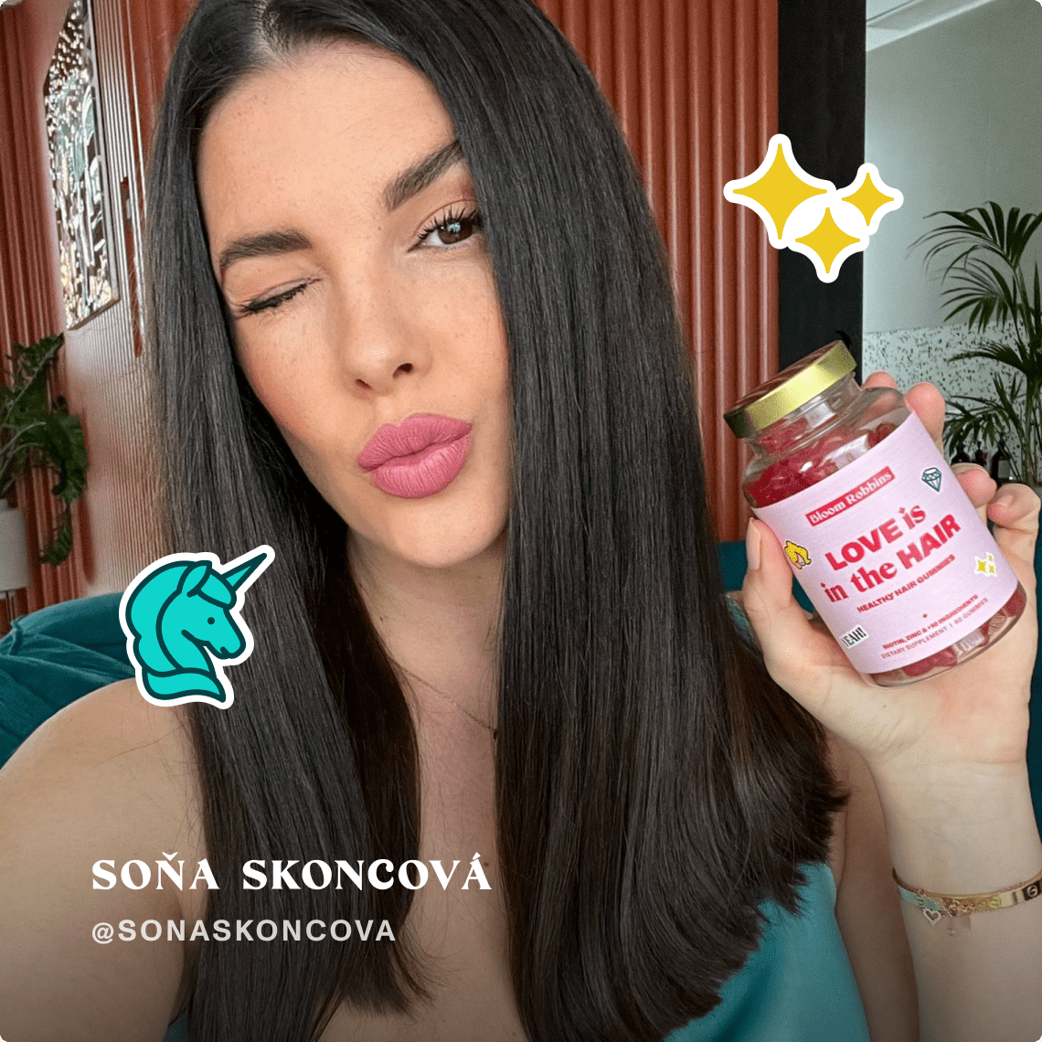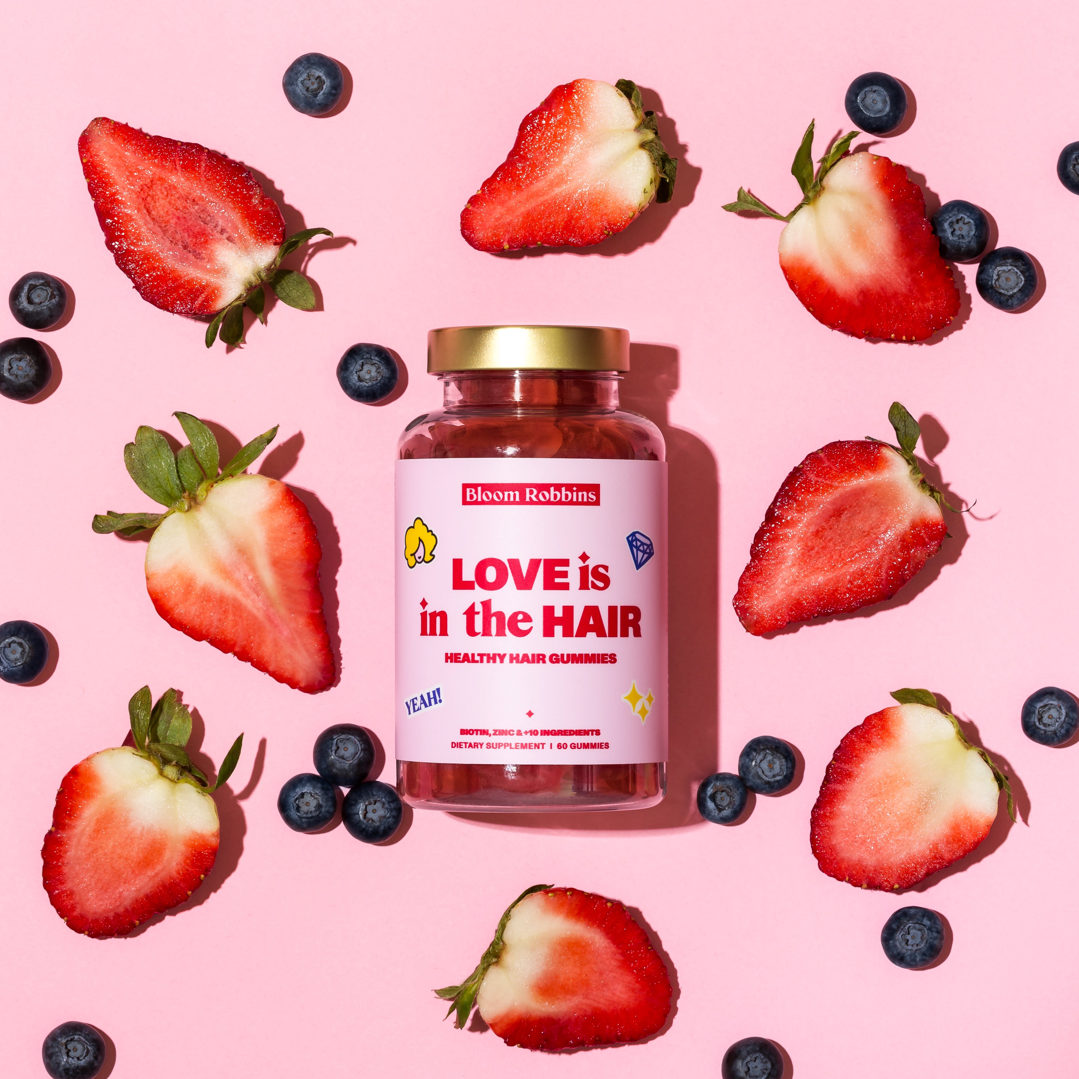 Love is in the hair bonbončki je prehransko dopolnilo za lase v obliki gumijastih bonbončkov z 11 vitamini in 4 minerali.