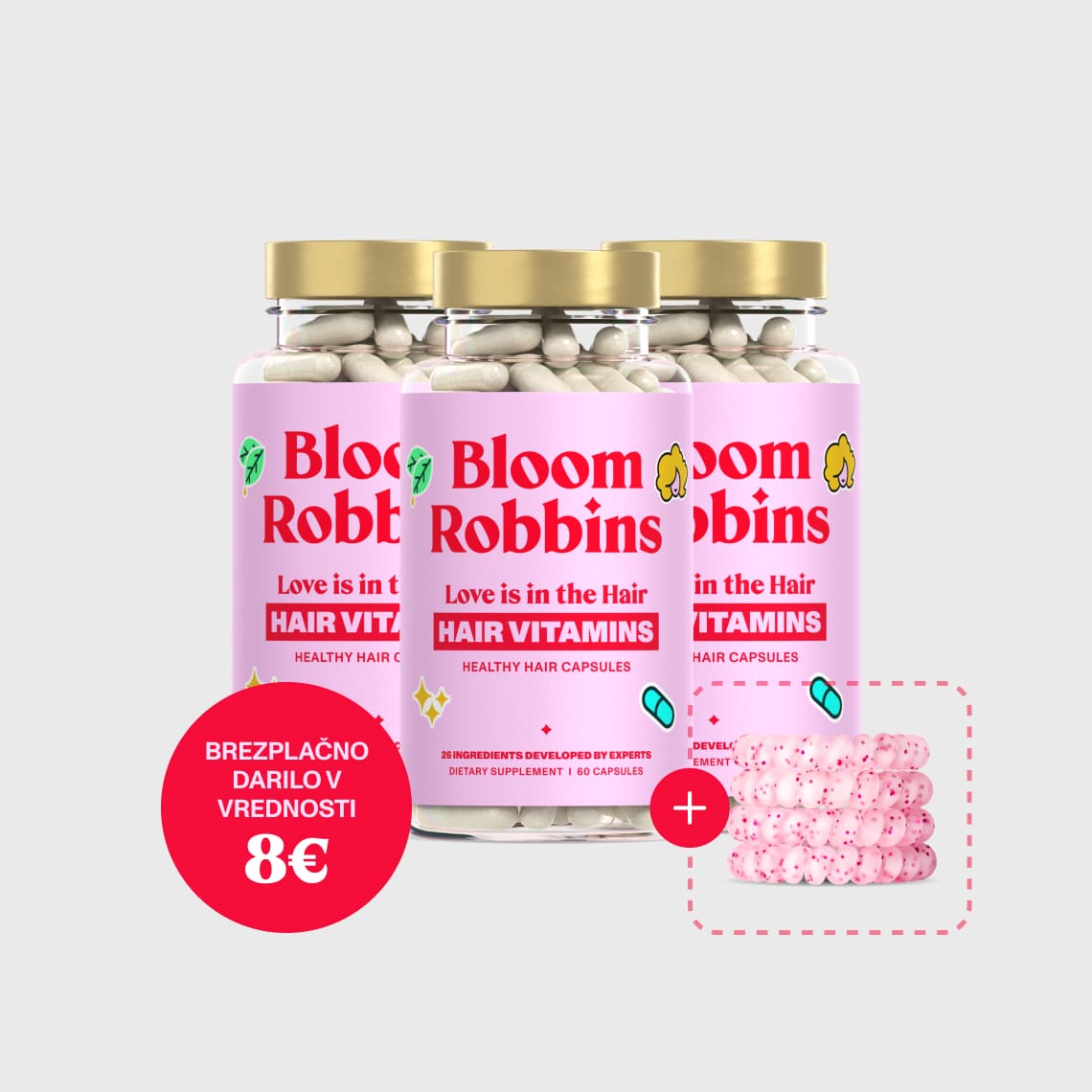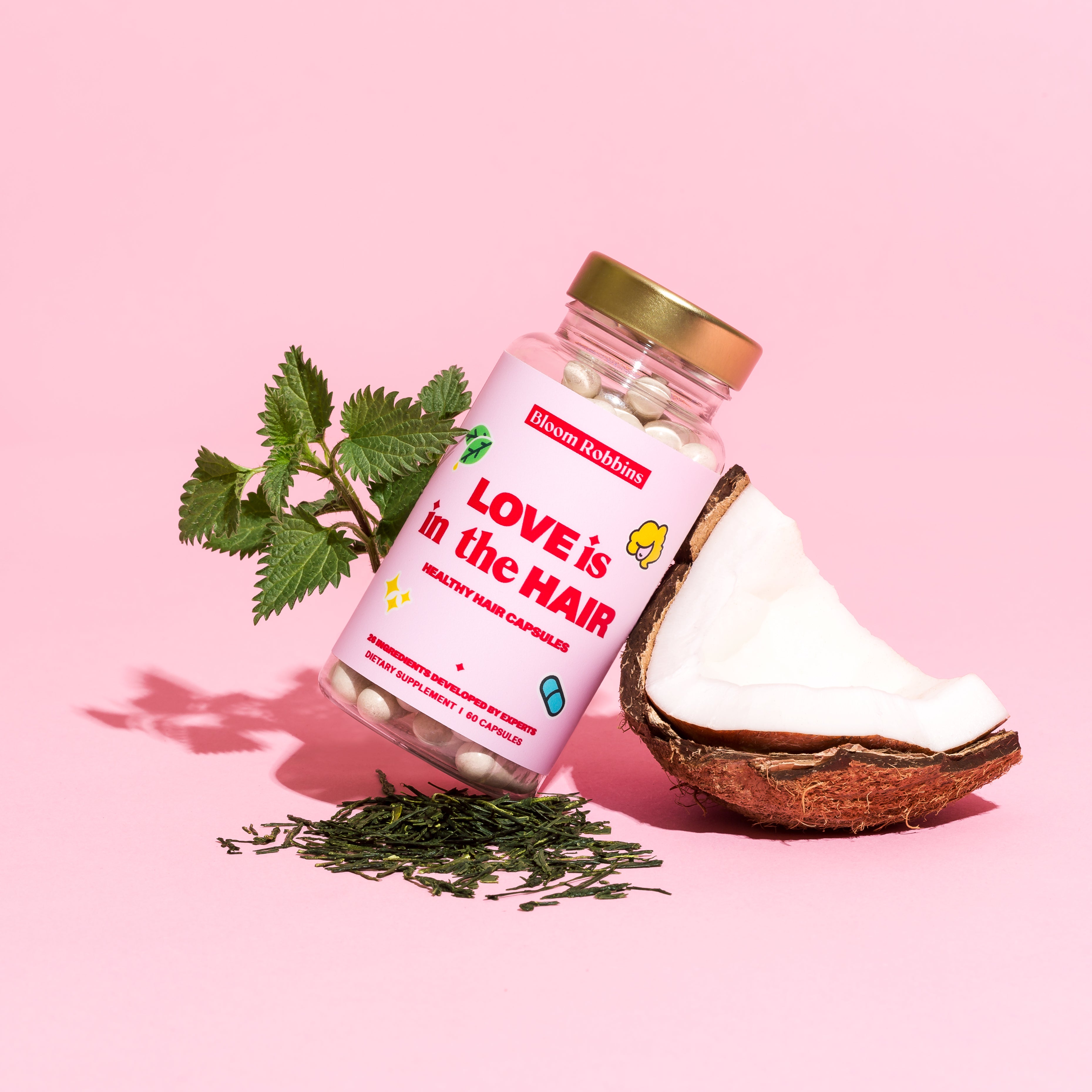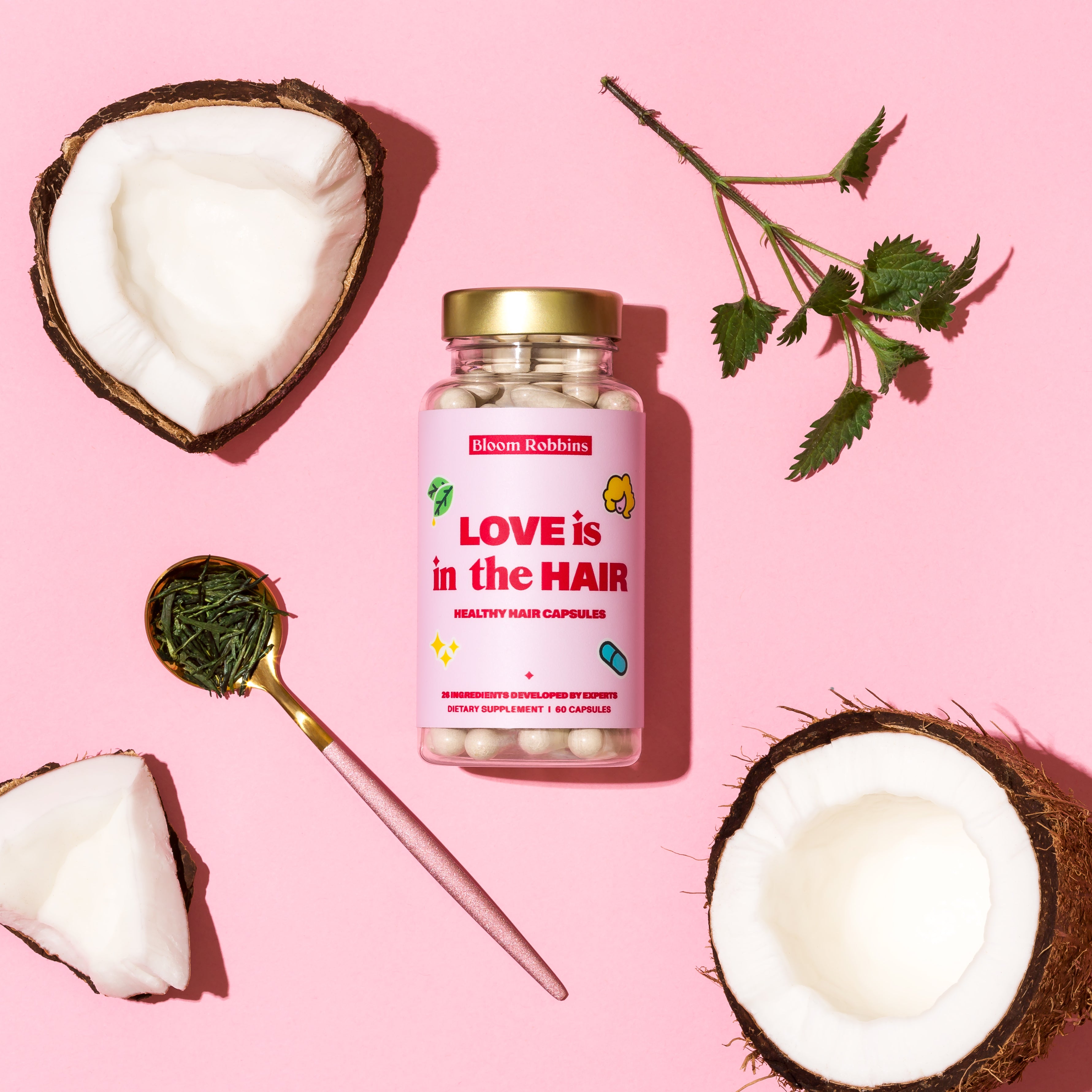 Love is in the hair kapsule je prehransko dopolnilo za lase v obliki kapsul s 26 komponentami.