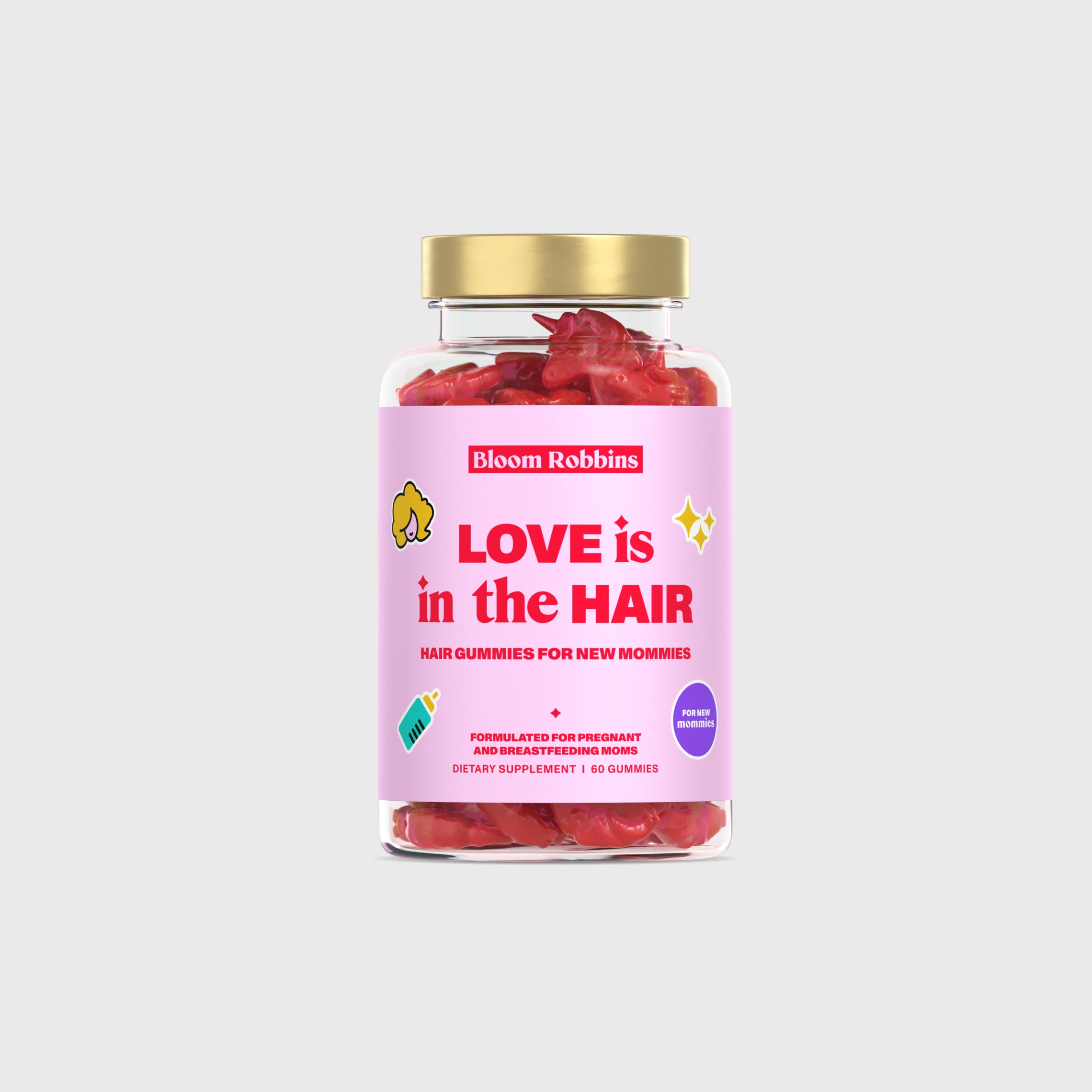 Love is in the hair vitamini za mamice je prehransko dopolnilo v obliki gumijastih bombonov z 8 vitamini in 4 minerali, namenjeno nosečnicam in doječim ženskam.