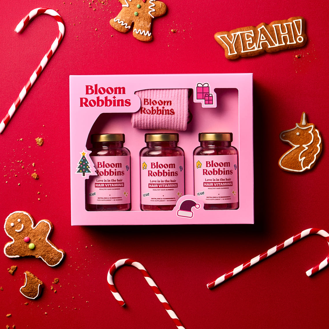 Božični paket za vse ljubiteljice dolgih, močnih in zdravih las. Love is in the Hair x3 vsebuje tri pakiranja legendarnih vitaminskih gumijastih bombonov, ki tvojim lasem zagotavljajo sijaj, moč, naravno rast in manj izpadanja. Poleg tega negujejo tudi kožo in nohte.