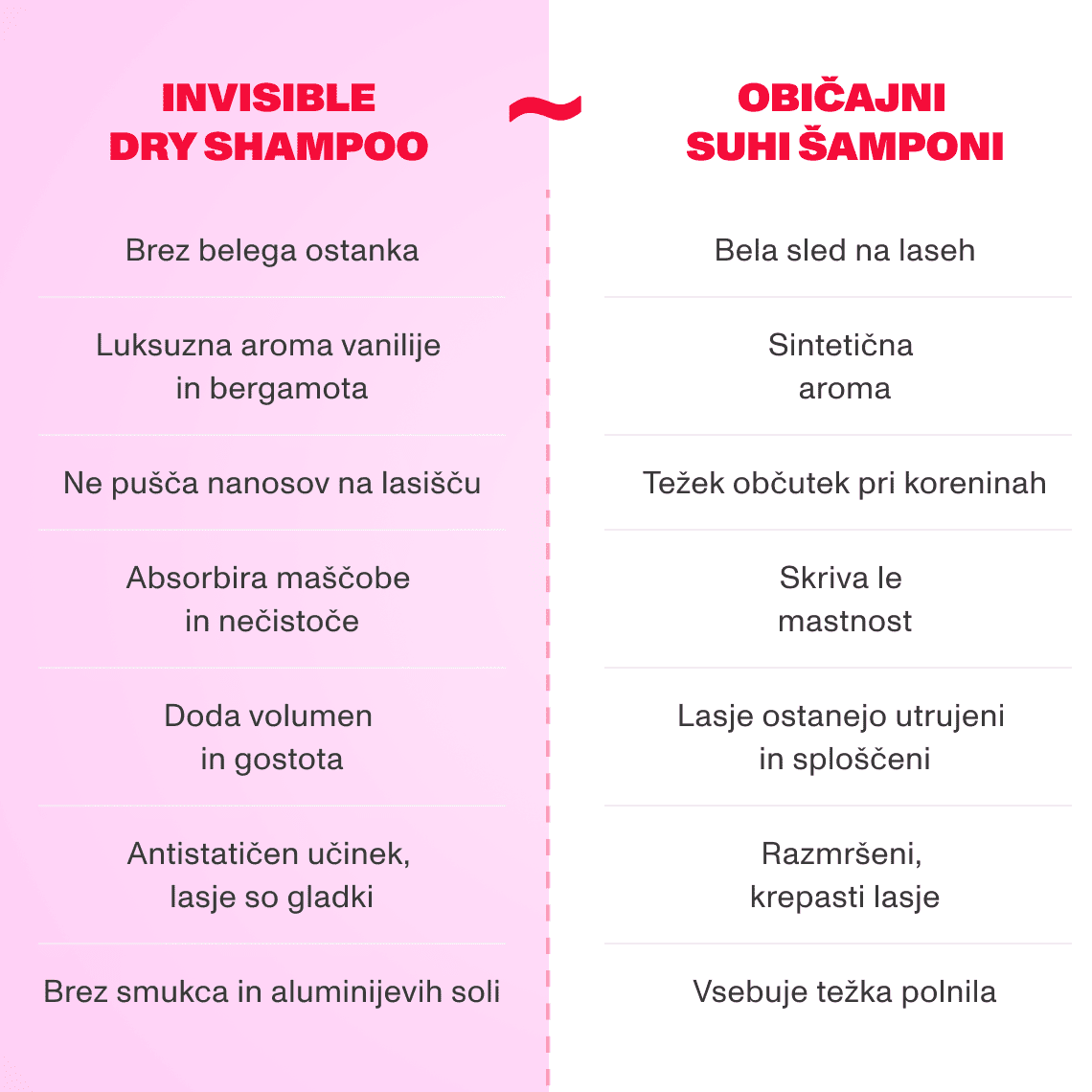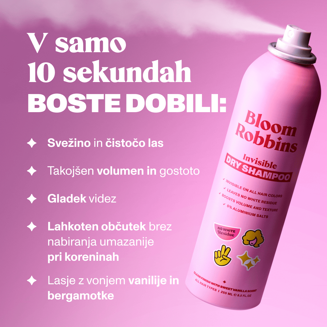 Invisible Dry Shampoo je vaš novi hair hack za čiste, sveže lase z volumnom v samo 10 sekundah. Napredna formula z riževim škrobom takoj vpije maščobo in umazanijo. Ne pušča belih sledi in ostane neviden na vseh barvah las. Vse to z razkošnim vonjem sladke vanilije s poudarki bergamotke.
